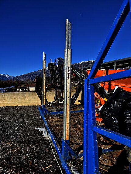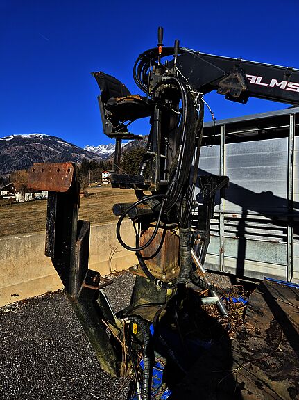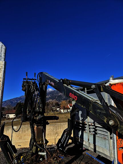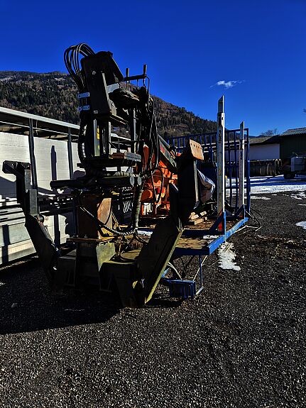 Abrollplato mit Holzrungenstöcke und Holzkran