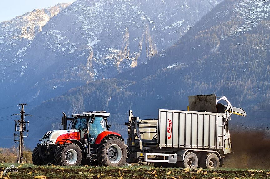 Mit 6m³, 12m³ oder 14 m³ Transportvolumen liefern wir Ihren hofeigenen Wirtschaftsdünger egal über welche Distanz kostengünstig aufs Feld und bringen diesen mit mittels Möschaverteiler oder im Berggebiet mittels Hochdruck (bis zu 100m) gleichmäßig und fachgerecht auf.