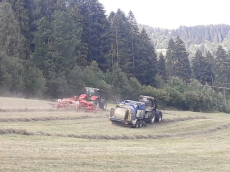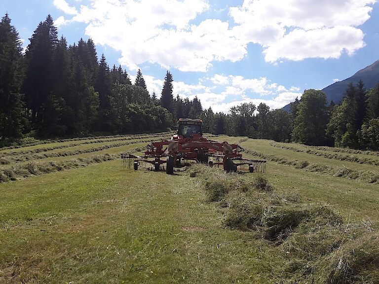 Mähen bis in extreme Steillagen, wenden mittels Kreiselheuer und schwaden mit dem Doppelschwader gehört zu unserem Grundangebot.