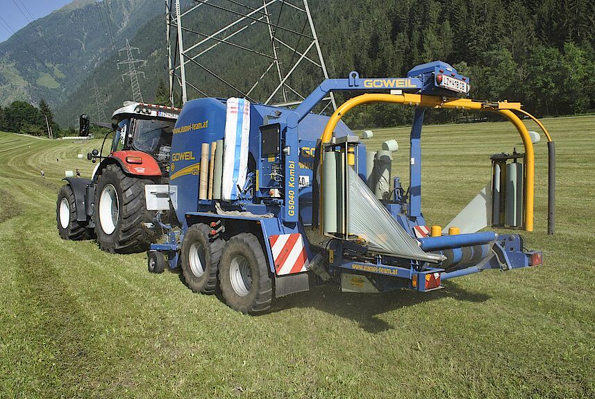 Dann kann der Kunde wählen ob er das Futter von uns kurzgehäckselt in den Fahrsilo bekommt oder in Ballenform gewickelt in Folie-Folie, geschnitten mit 30 Messern.