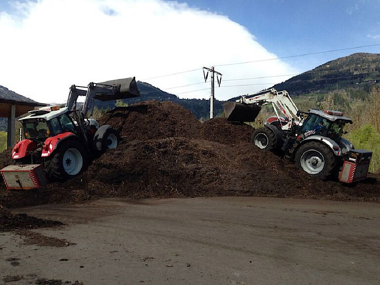 Seit 2002 verarbeiten wir im Klärwerk Dölsach die regional anfallenden Klärschlämme vermischt mit geschreddertem Strauchschnitt zu wertvollem Dünger für Rekultivierungen und Landschaftsbau.